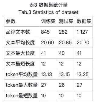 本文以北京林业大学生物学院的风味碳酸饮料PM&FP(Project mapping & Flash profile)感官调研结果为基础,构建了专有的食品感官分析数据集。该数据集总共包含180名消费者共1 127条有效评论品评文本,按照3∶1的比例划分为训练集和测试集。具体的数据集特征见表3。在对品评文本进行数据标注时,文本分词、句法解析以及词性标注均通过Stanford CoreNLP完成,而方面词、感官词和感官强度则由实验人员手工标注以支撑模型训练和测试。