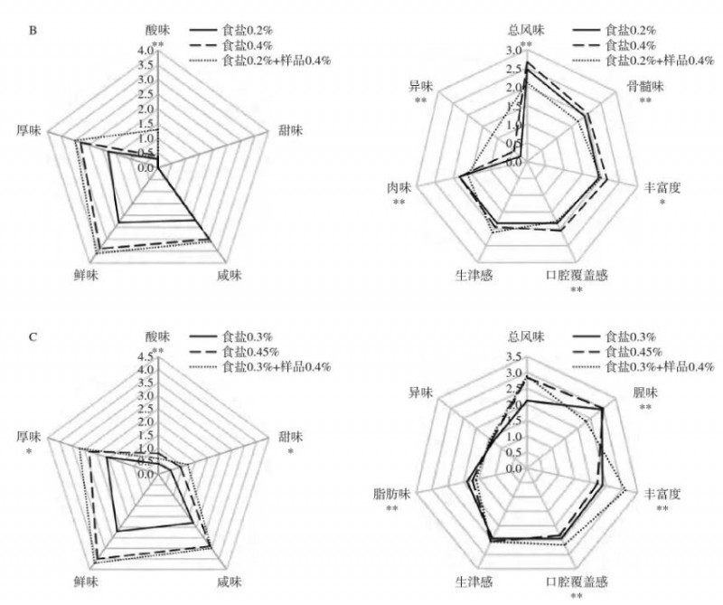 02双孢菇提取物协助减盐前后描述性感官分析