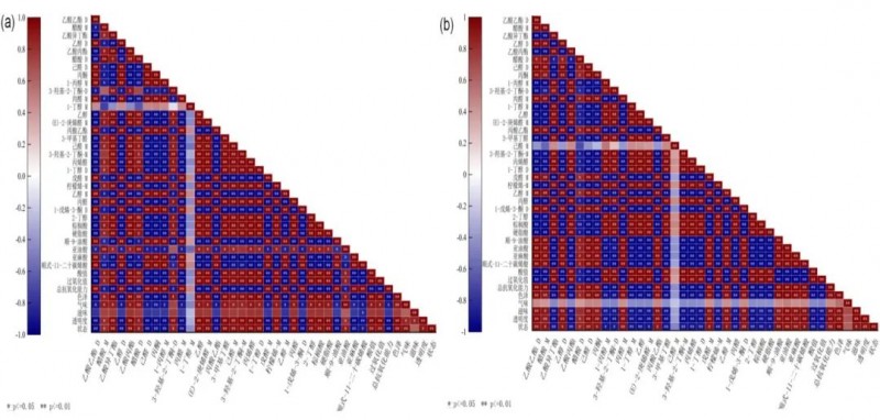 综上所述,相关性分析虽然可以帮助识别各因素之间潜在的关联,但核桃油风味的形成是多种因素共同作用的结果,涉及众多贡献成分的综合作用。因此,深入探究导致这些风味物质关联的潜在机制,将成为未来的重要研究方向。