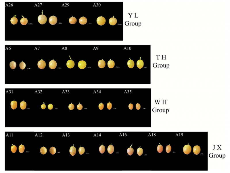 (4)JX组(鸡心黄皮):拥有最高的鲜味和固酸比,代表了具有丰富口感的典型日常消费品种。